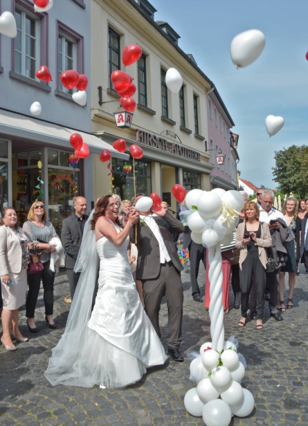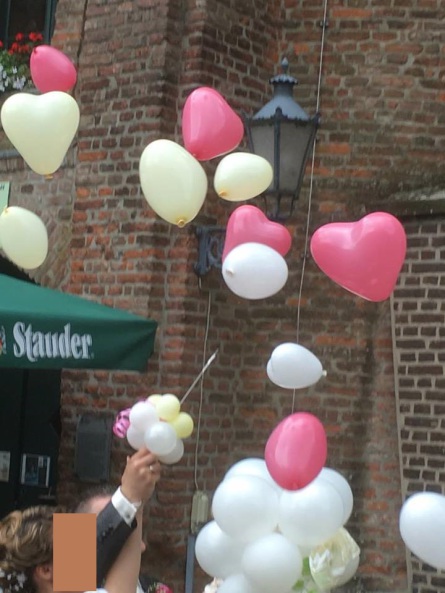 Ein Riesen-Ballon, der explodiert – und 30,50 oder 70 kleine Luftballon-Herzen steigen daraus empor.
